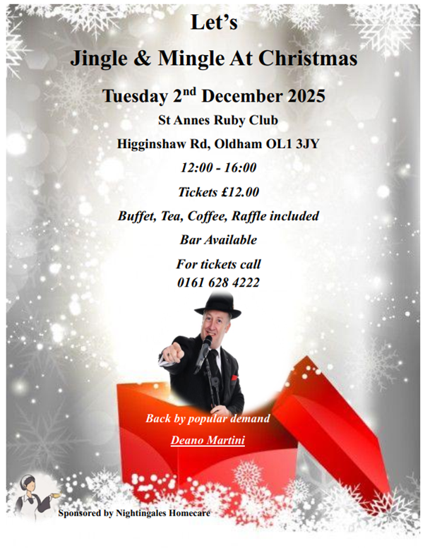 Nightingales Homecare are hosting a Christmas event for over 60’s on Tuesday 2nd December 2025 At St Annes Ruby Club Higginshaw Rd, Oldham OL1 3JY 12:00- 16:00 Tickets are priced […]